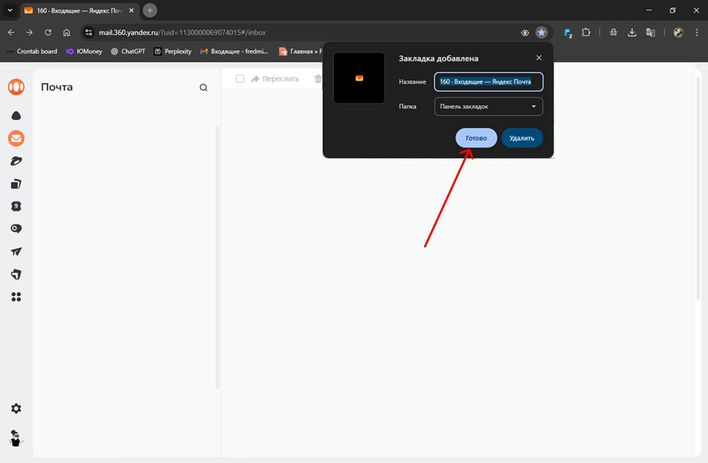 3. Удаление закладки из панели
